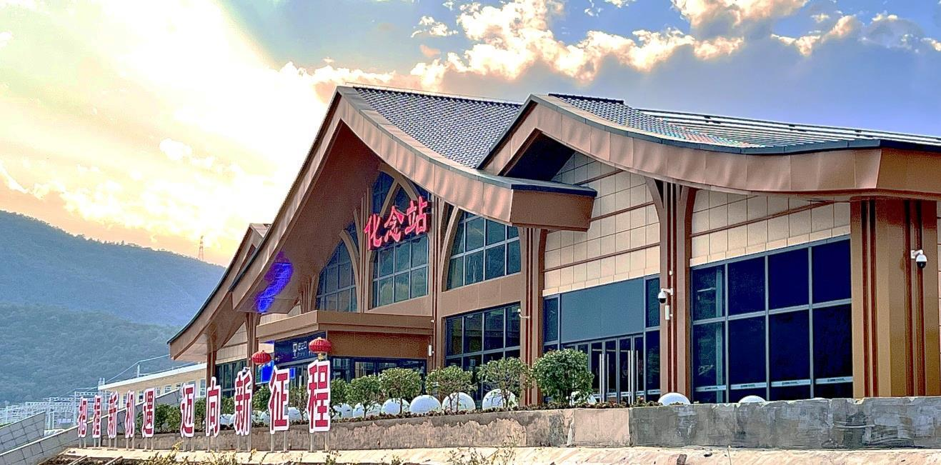 2.化念站位于玉溪市峨山縣化念鎮(zhèn)東北側(cè),距鎮(zhèn)中心約3.0公里?;钫緸榫€側(cè)下式站房,總建筑面積1500平方米,地上1層,最高聚集人數(shù)300人。旅客乘降站臺2座、到發(fā)線3條。設(shè)有重點旅客候車區(qū)。采用驗檢合一、進出站合一的進出站檢票模式。