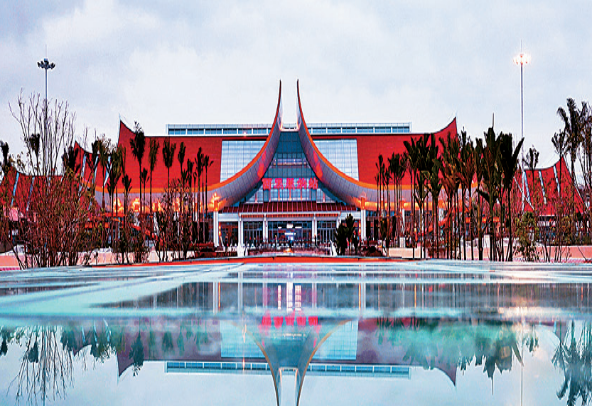 8.西雙版納站位于云南省西雙版納傣族自治州景洪市嘎灑鎮(zhèn)曼暖龍村境內(nèi),距西雙版納嘎灑國際機場約600米。西雙版納站為線側(cè)下式站房,總建筑面積為9935平方米,最高聚集人數(shù)為3000人,中間候車大廳一層,兩側(cè)二層。旅客乘降站臺3座、到發(fā)線5條,目前使用1個進站口,1個出站口。采用驗檢合一的進站檢票模式。設(shè)商務(wù)候車室、行政貴賓室、母嬰候車室及重點旅客候車區(qū)。