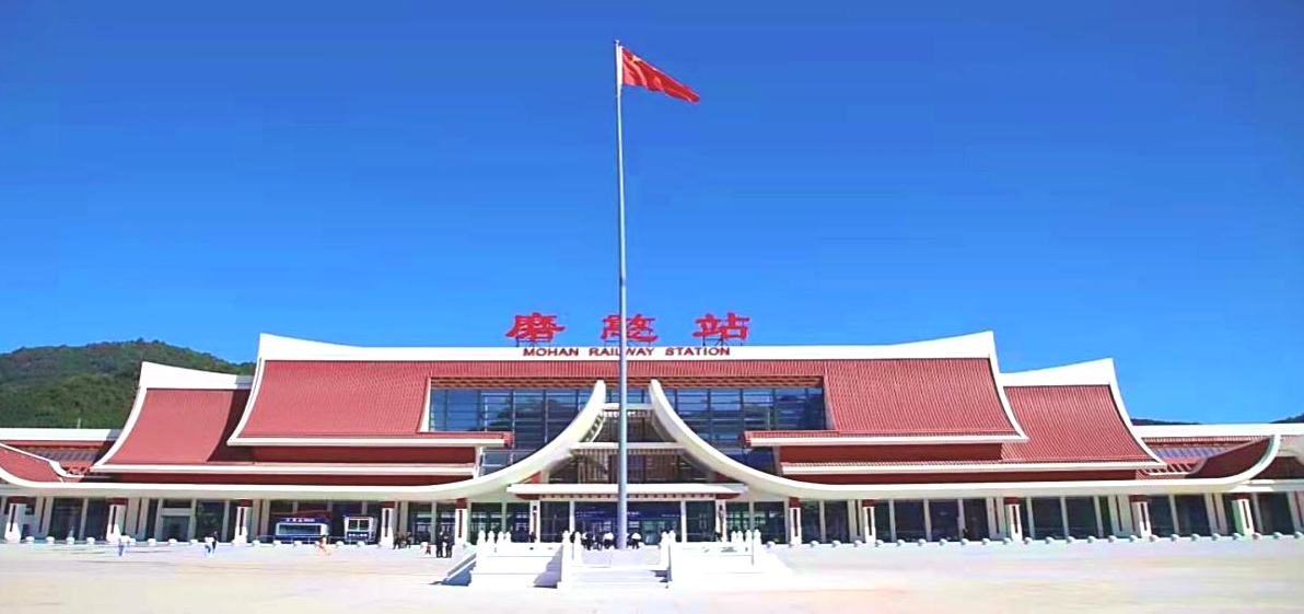 4.墨江站位于云南省墨江哈尼族自治縣聯(lián)珠鎮(zhèn)癸能村,距離縣城區(qū)約8公里。墨江站為側(cè)平式站房,主體建筑面積4990平方米,地上1層(兩側(cè)夾層),地下局部1層,最高聚集人數(shù)600人。旅客乘降站臺2座、到發(fā)線3條。采用驗檢合一的進站檢票模式,設(shè)商務(wù)候車室、母嬰候車室及重點旅客候車區(qū)。
