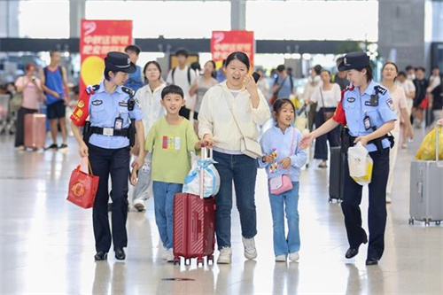 當(dāng)日,福州火車站迎來國慶中秋假期旅客返程客流高峰,福州鐵路公安處福州站派出所優(yōu)化警力配置,積極提供溫馨便民舉措,傾力服務(wù)旅客出行,守護(hù)鐵路出行安全,贏得旅客贊譽(yù)。謝貴明/視覺中國